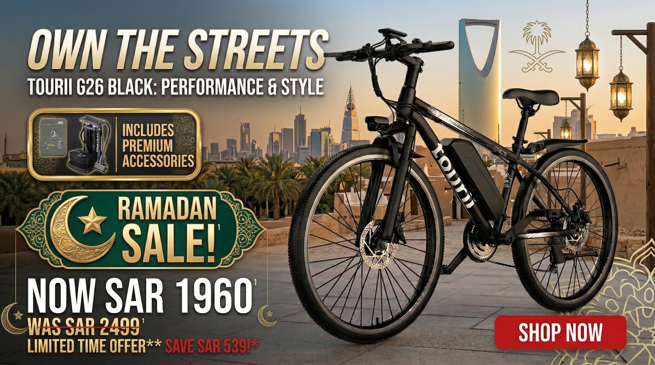 Tourii G26 Black 26-Inch High-Carbon Steel Frame Electric Bike