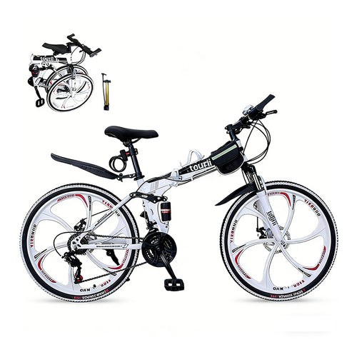 24/26 inch 24 speed folding mountain bike - high carbon steel frame, magnesium alloy integrated wheels, shock absorption function, suitable for both men and women